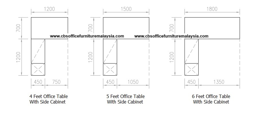 GENERAL OFFICE TABLE WITH SIDE CABINET SIZE